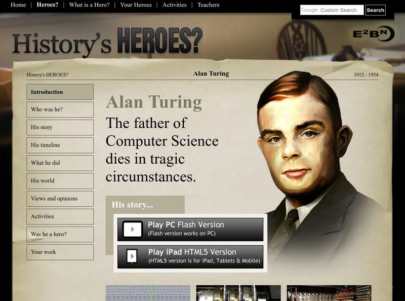 This website explores the lives of heroic ordinary people who made their mark on history. Features illustrated story and timeline on Alan Turing, the father of modern computing. Find out who he was, what he did, his achievements, and his...