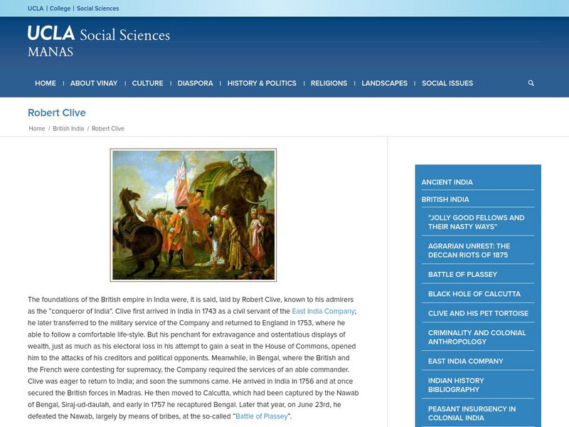 This site is provided for by the Fordham University. Read an excerpt from Clive's speech to the House of Commons regarding the rule of the East India Company over India. Offers excellent perspective on the imperialistic, superior...