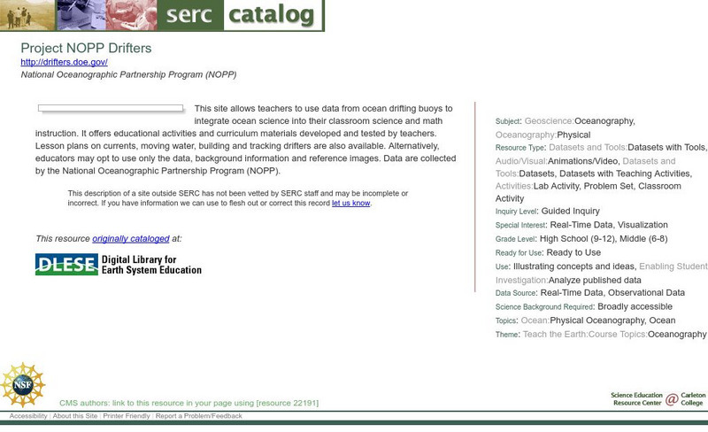 Data collected by the National Oceanographic Partnership Program (NOPP) can be used by teachers to integrate ocean science into their science and math instruction.This site offers educational activities, curriculum materials, and lesson...