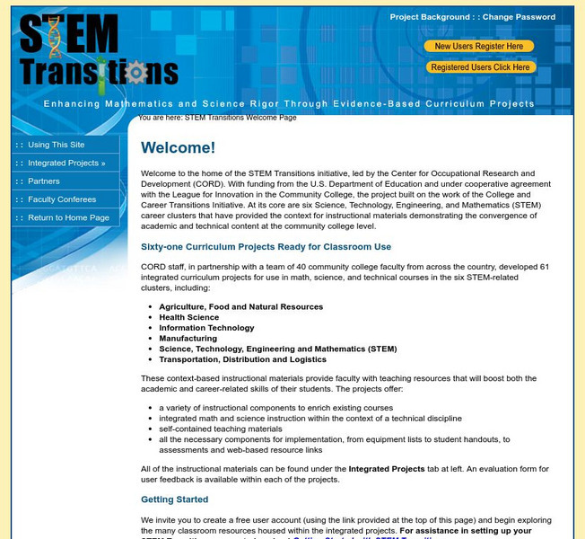 Integrated curriculum projects for use in math, science, and technical courses can be found on this website. Each project includes teaching materials, instructional components, and components for implementation, equipment list,...