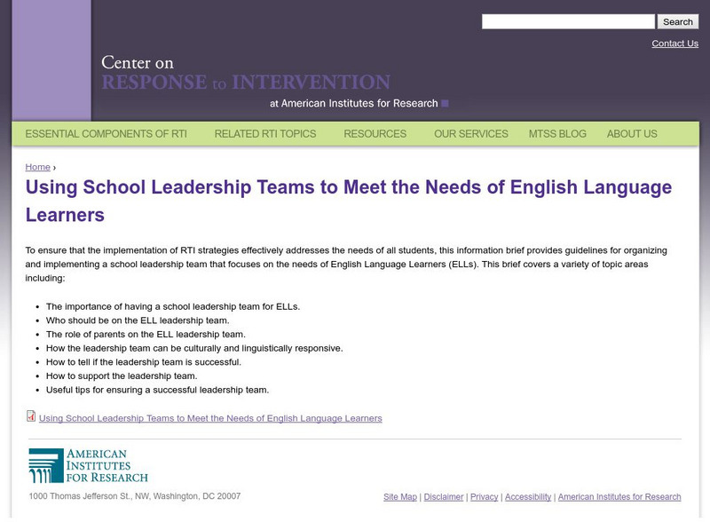 Center on Response to Intervention:leadership Team and English Language Learners