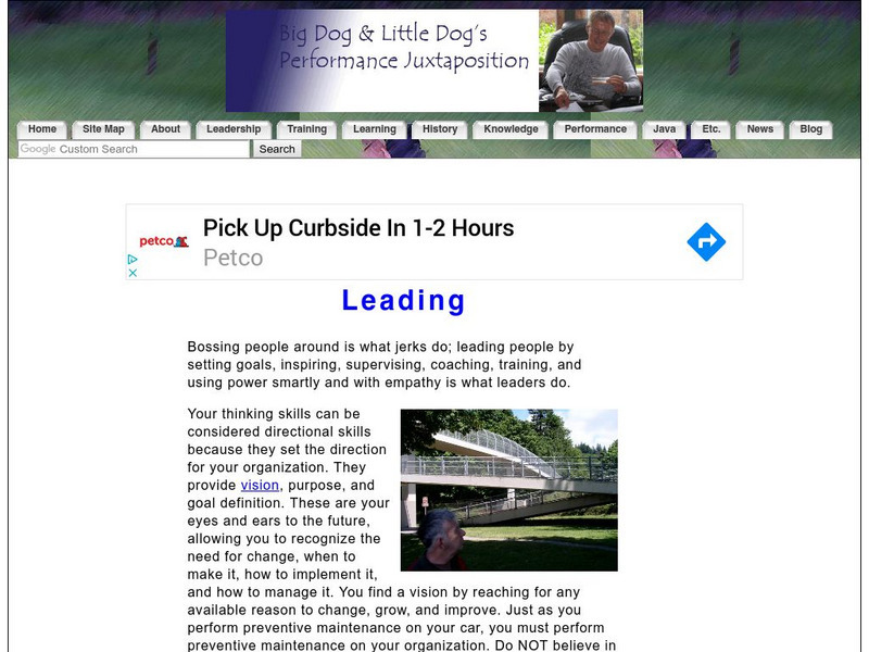 Site lists a wide range of resources on the various approaches and techniques of developing leadership skills. Quiz allows participants to find their personal qualities of leadership, browse different leadership styles, or discuss...