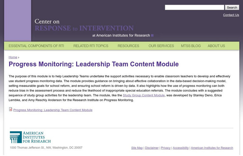 Center on Response to Intervention: Progress Monitoring: Leadership Team Content