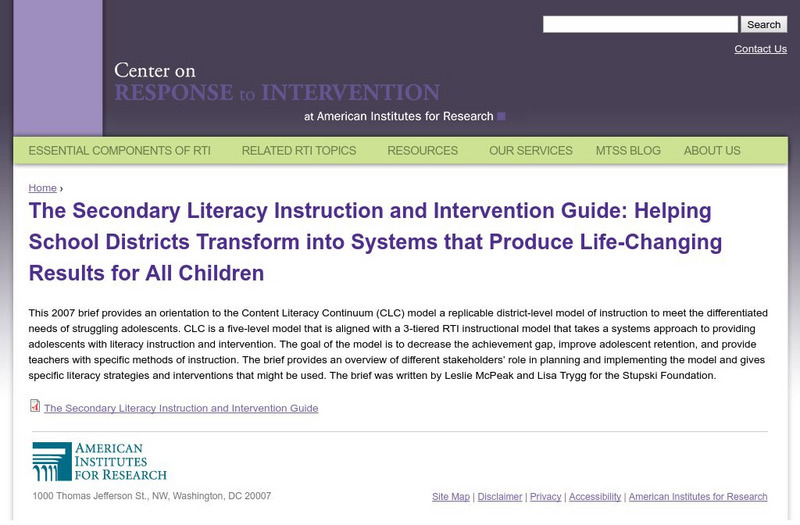 Center on Response to Intervention: Secondary Literacy: Life Changing Results