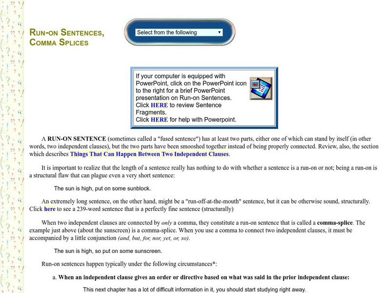 This site shows how to repair run-on sentences. Students and teachers will find this interactive resource helpful.