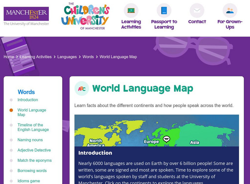 Children's University of Manchester: Word Literacy: World Languages Map