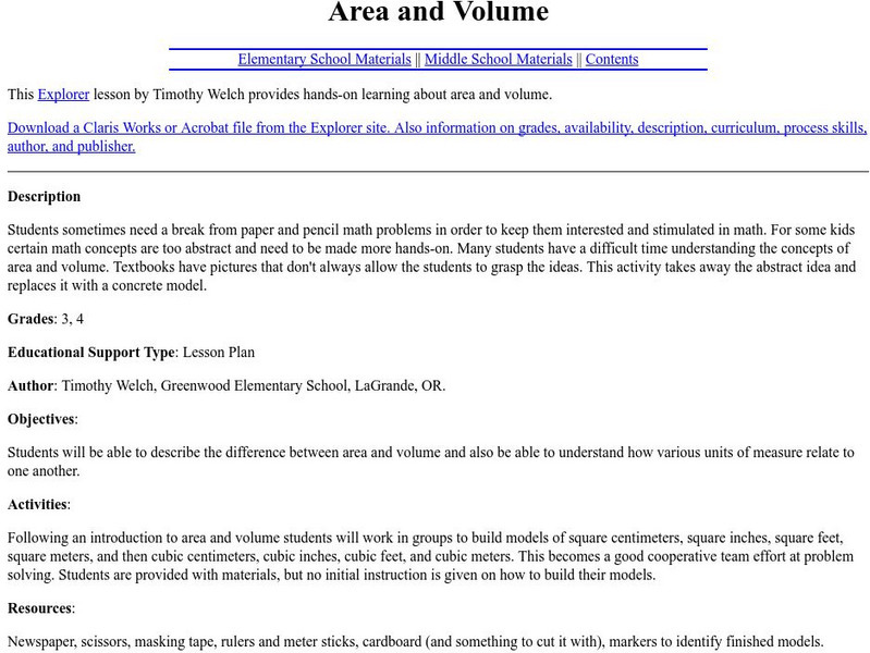 The Math Forum: Nctm: Lesson Plan: Area and Volume
