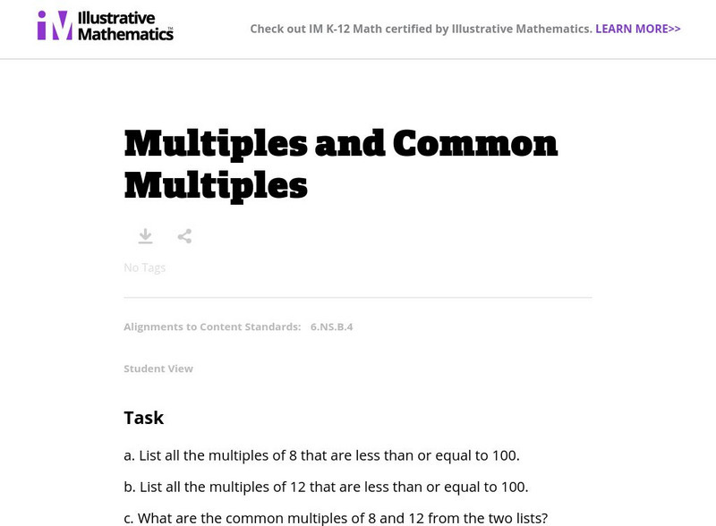 Illustrative Mathematics: 6.ns Multiples and Common Multiples