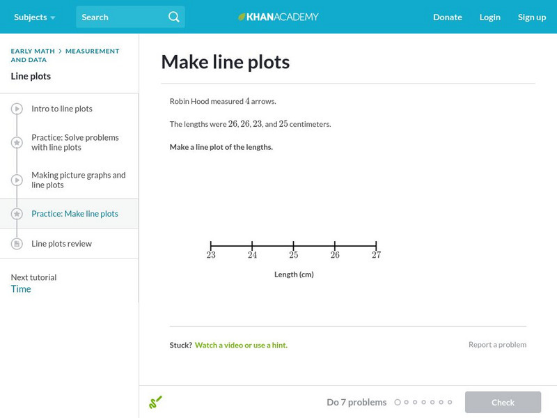 Record measurements on line plots (also called dot plots). Students receive immediate feedback and have the opportunity to try questions repeatedly, watch a video or receive hints.
