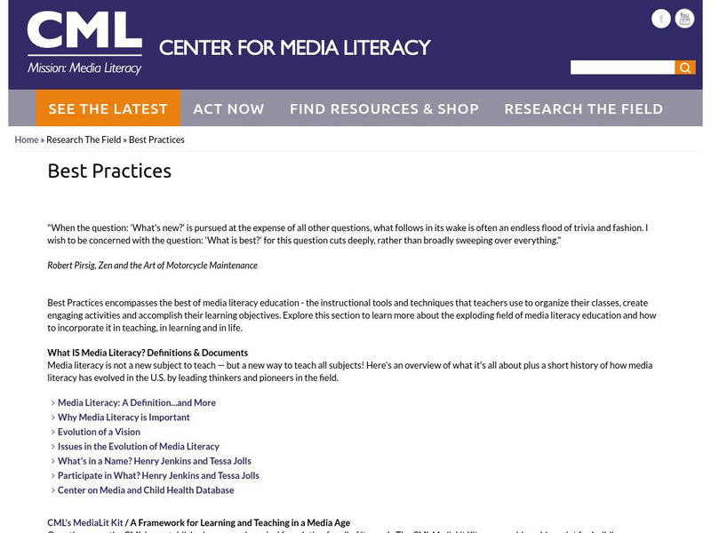 Best Practices encompasses the best of media literacy education - the instructional tools and techniques that teachers use to organize their classes, create engaging activities and accomplish their learning objectives. Explore this...
