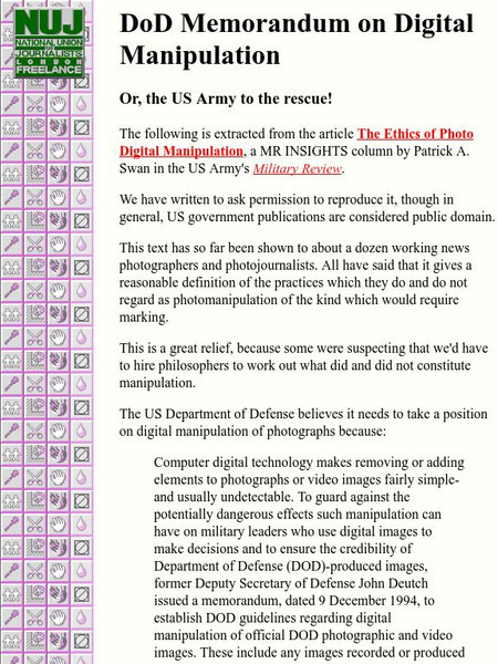 This is an article offering possible guidelines (and marking techniques) to avoid the unethical alteration of photos through digital manipulation or tampering.