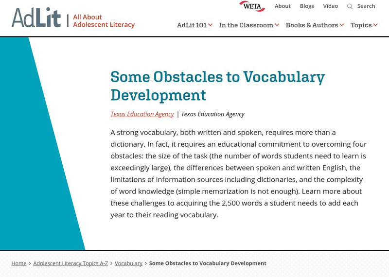 Ad lit.org: Some Obstacles to Vocabulary Development