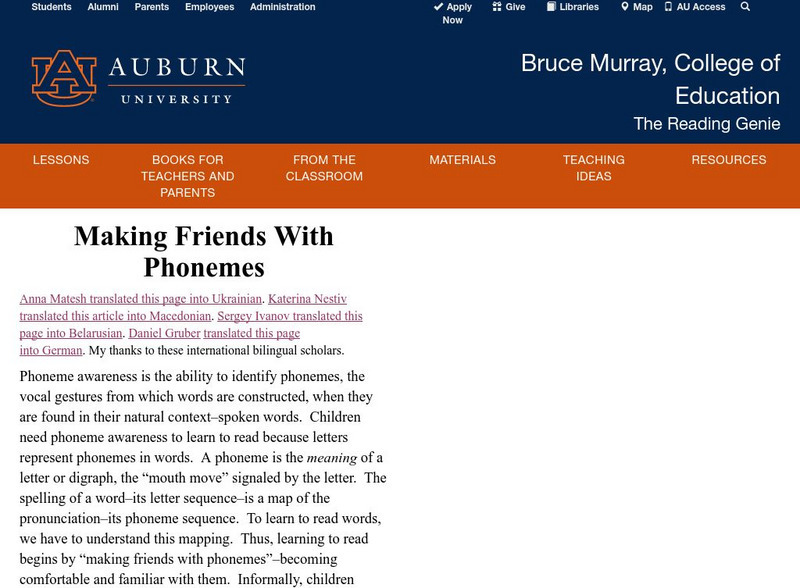 Superb explanation of phoneme awareness. Content addresses how to focus on individual phonemes, how to make the phoneme memorable, and how to find phoneme in word contexts.