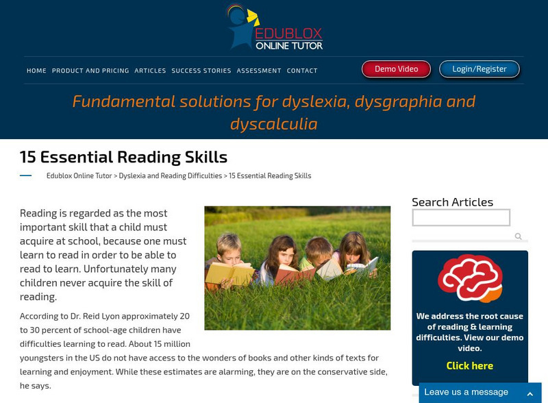 What types of reading skills do students need to be successful? This informative site focuses on students with learning disabilities. Explore!