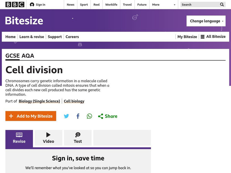 Bbc: Gcse Bitesize: Cell Division Aqa