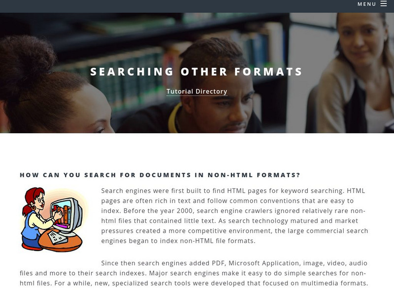 Micro-Module provides instruction on searching documents in non-HTML formats. Find out about specilized search engines for alternate file formats. Also contains godd charts summarizing file extensions of alternate formats. Following the...