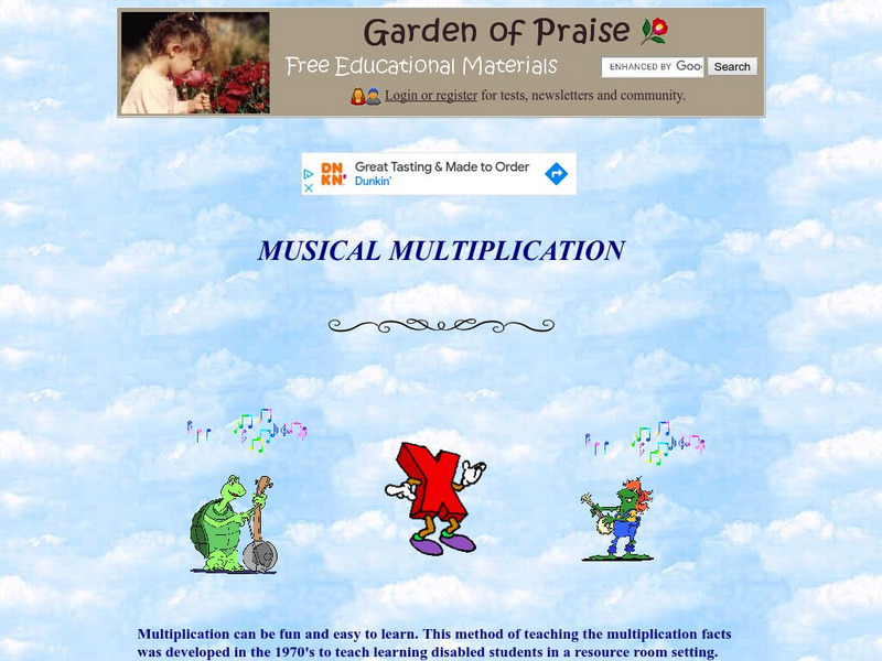 Join the multiplication sing-a-long in this whimsical math tutorial where the multiplication facts have been set to music. After learning each song, students can print out the study and test pages to see what they have learned....