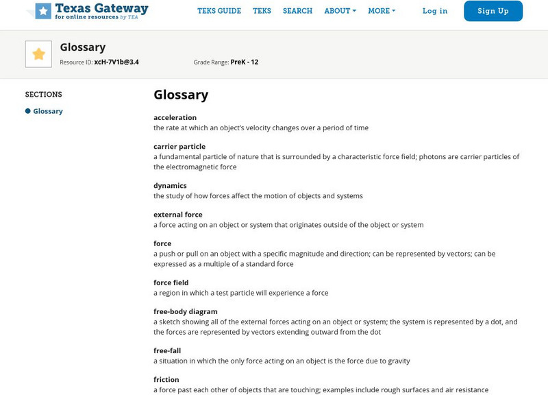 Texas Gateway: Glossary for Forces and Newton's Laws