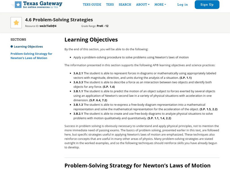 Texas Gateway: Problem Solving Strategies for Newton's Laws of Motion