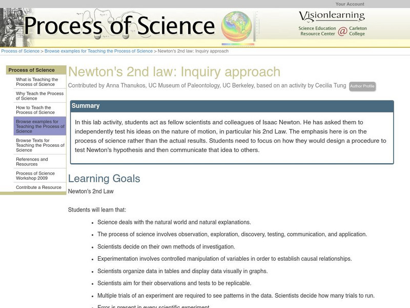 Understanding Science: Newton's 2nd Law: Inquiry Approach Lesson