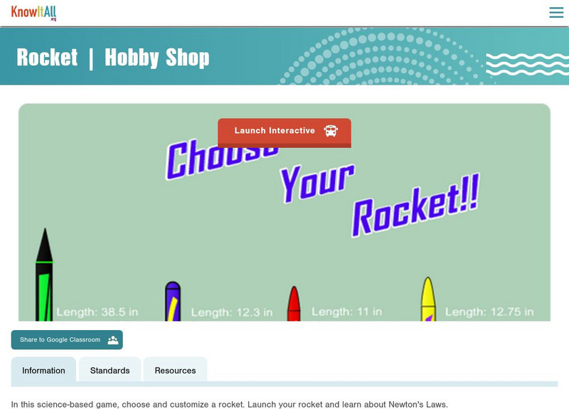 Design your own virtual rocket, and then test launch it. Watch tutorials about Newton's laws of motion and rocket basics to help you improve your rocket's performance.