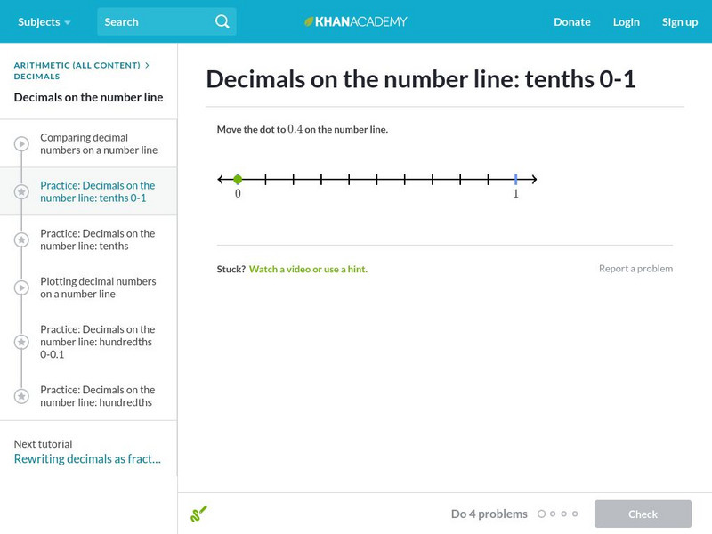 Khan Academy: Decimals on the Number Line: Tenths 0 1