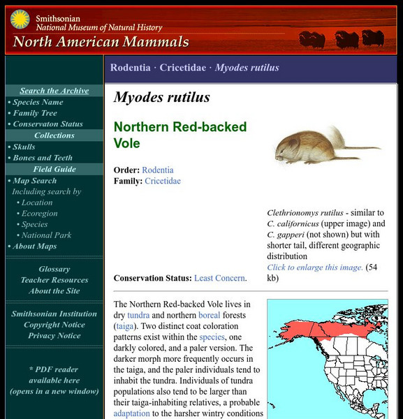 National Museum of Natural History: American Mammals: Northern Red Backed Vole