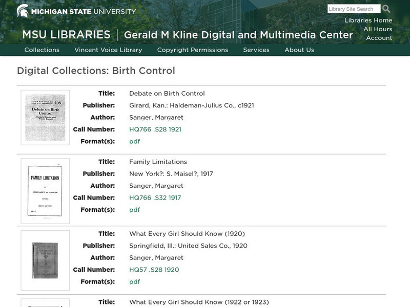 Michigan State University: Msu Libraries: Digital Collections: Birth Control