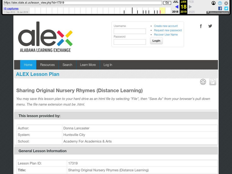 Contains plans for short, daily minilessons that use nursery rhymes to teach basic reading skills. In addition to objectives and standards, this instructional plan contains links to sites used in the lessons as well as assessment and...