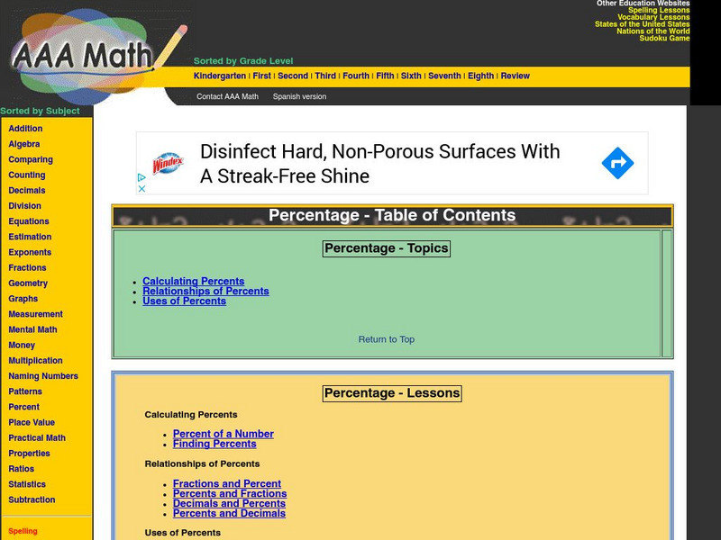 This AAA Math tutorial covers calculating percents, relationships of percents to fractions and decimals, and uses of percents.