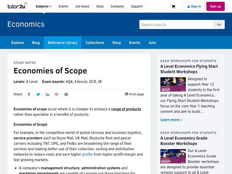 This site is an explanation of several factors that impact mass production. Primarily, the concept of economies of scope is explored.