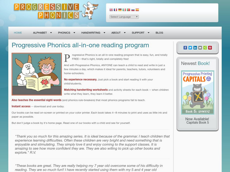 This site offers phonics practice for beginner, intermediate, and advanced readers using downloadable books that encourage fluency, comprehension and a love of reading. The program also includes downloadable alphabet and handwriting...