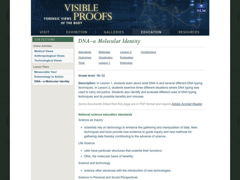In this lesson plan site, students learn about DNA and examine three different situations where DNA was used to solve a case.