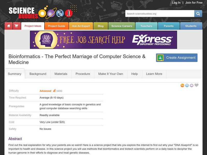 Find out the real explanation for why your parents are so weird. Here is a project that lets you explore the internet to find out why your "DNA blueprint" is so important to health and disease. In this project you will use methods that...