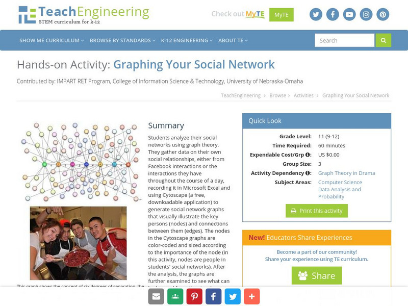 Students analyze their social networks using graph theory. They gather data on their own social relationships, either from Facebook interactions or the interactions they have throughout the course of a day, recording it in Microsoft...