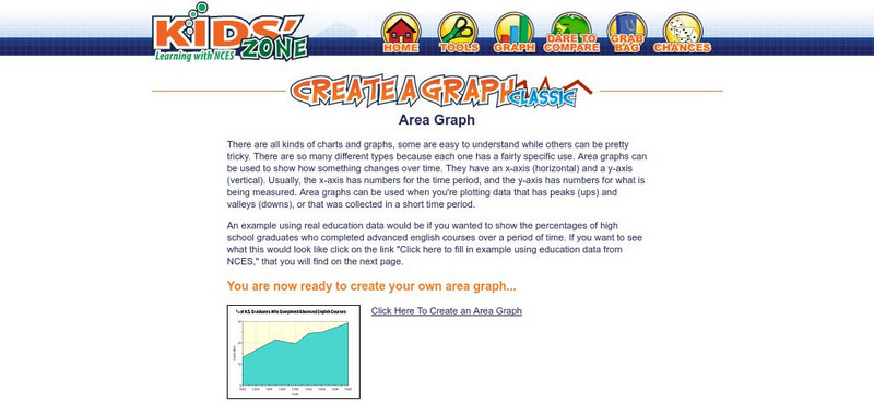 This is where you will find step by step directions explaining how to create an area graph. Complete each step and click on the next tab. Directions are simple and clear.