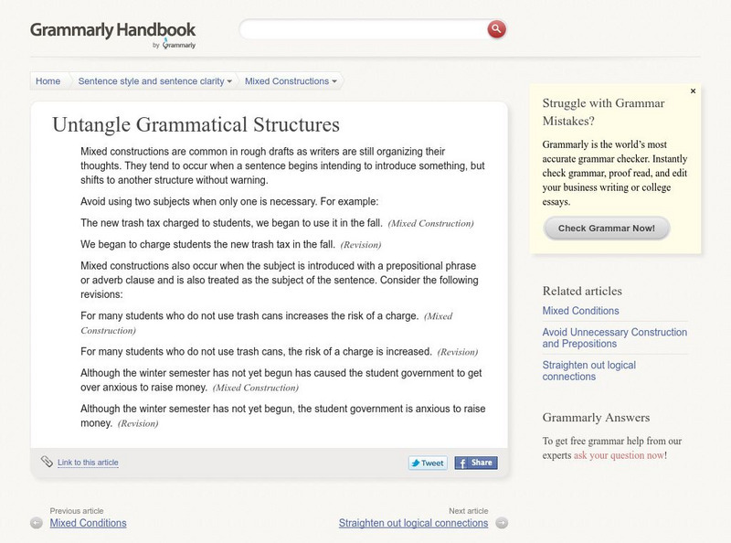 This page explains the need to revise sentences with unclear or mixed constructions and provides examples.