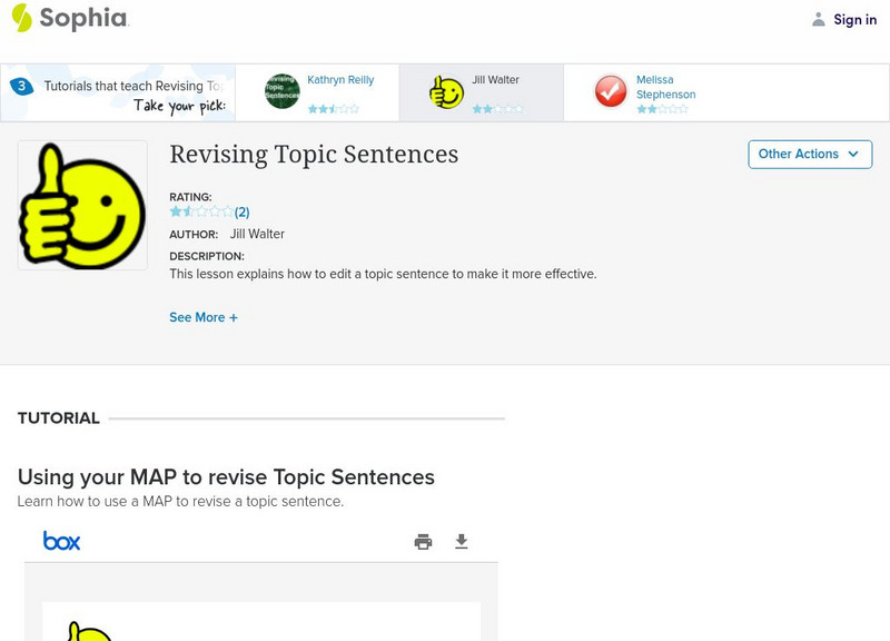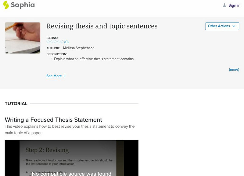 This tutorial focuses on revising the thesis and topic sentences using two videos and two slideshows. The first video discusses a 3-step revising process for making sure the thesis fits the paper; the second video focuses on what...