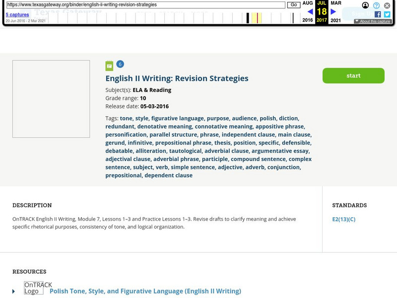 Texas Gateway: Strategies for Revising: Practice 3 (English Ii Writing)