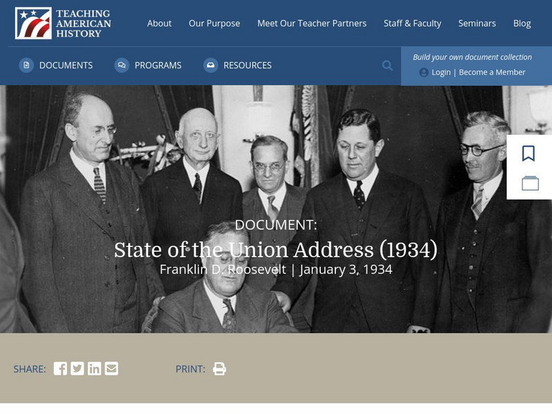 Teaching American History: Franklin D. Roosevelt: State of the Union 1934