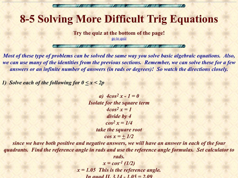 Ojk's Precalculus Study Page: More Difficult Trig Equations