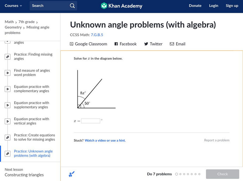 Khan Academy: Unknown Angle Problems (With Algebra)