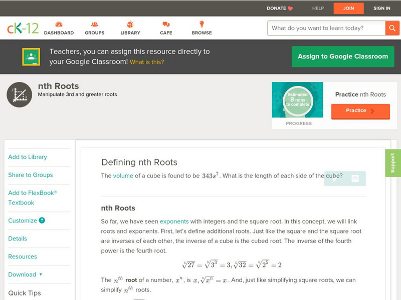 Ck 12: Algebra: Nth Roots