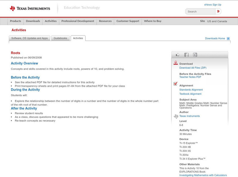 Concepts and skills covered in this activity include roots, powers of 10, and problem solving. Roots is taken from "Investigating Mathematics with Calculators in the Middle Grades".