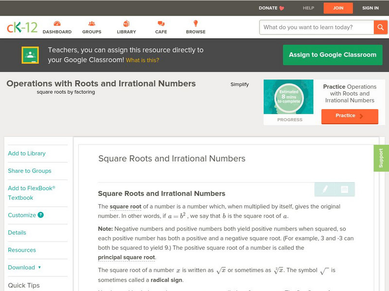 Ck 12: Algebra: Square Roots and Irrational Numbers