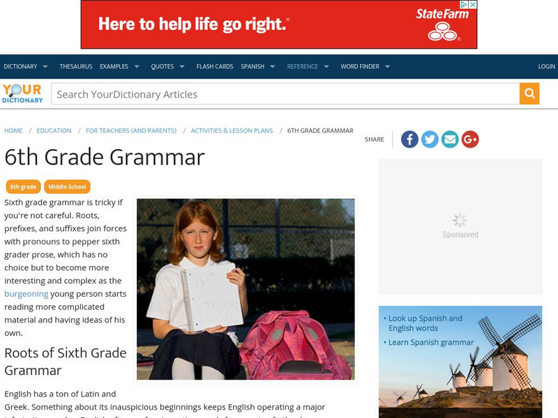 This article focuses on grammar generally taught in 6th grade including more complicated reading material; roots, prefixes, and suffixes; and subjective and objective pronouns.