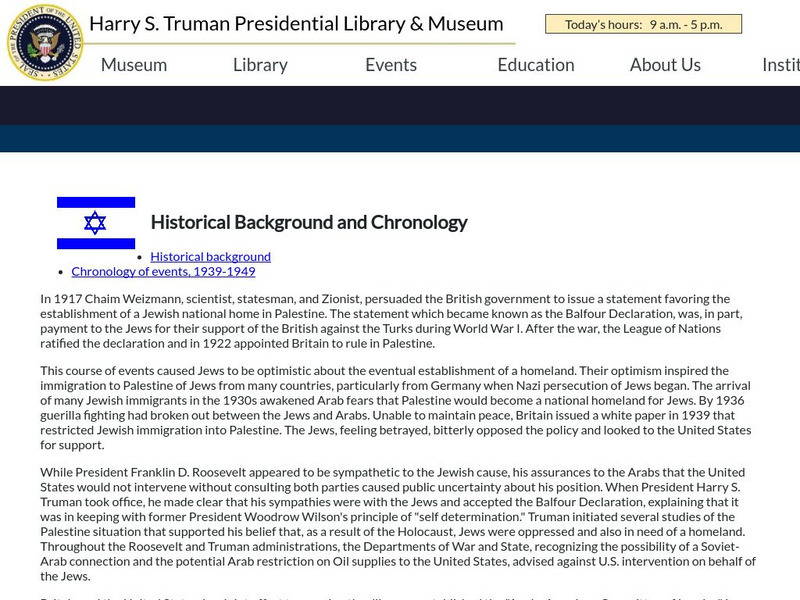 Harry S. Truman Library: The U. S. Recognizes Israel: Historical Background