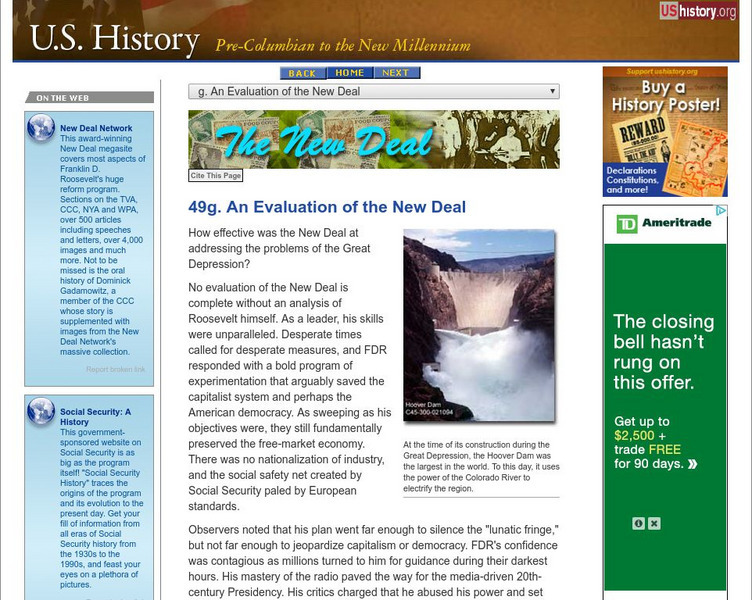 A school site that shows a collection of editorial cartoons from the 1930s responding to the First Hundred Days of Roosevelt's presidency. Great primary source material for viewpoints of the day.