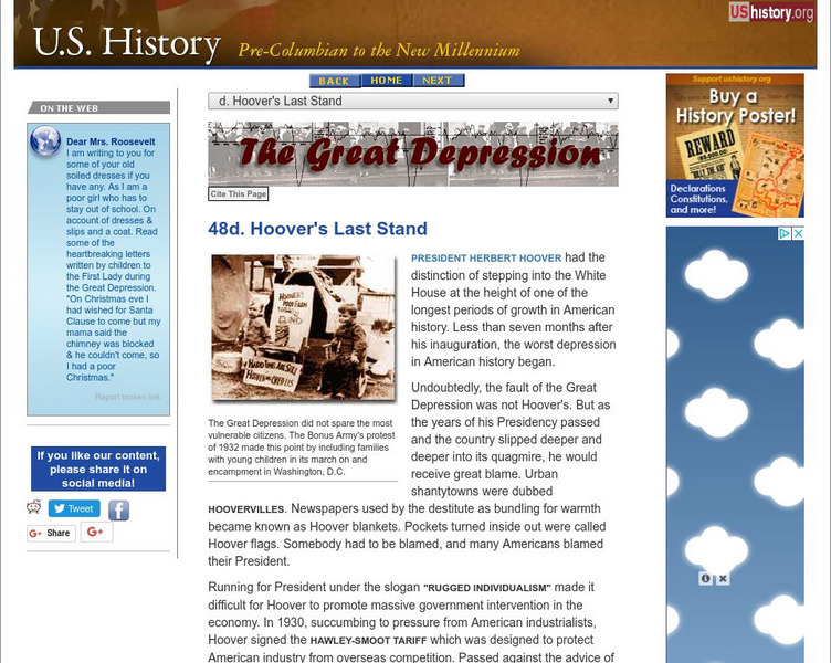The Great Depression was not the fault of Herbert Hoover, but see how he was unable or unwilling to take the steps to address it. Find out how the election of 1932 was the result of his misunderstanding of the economics of the time.
