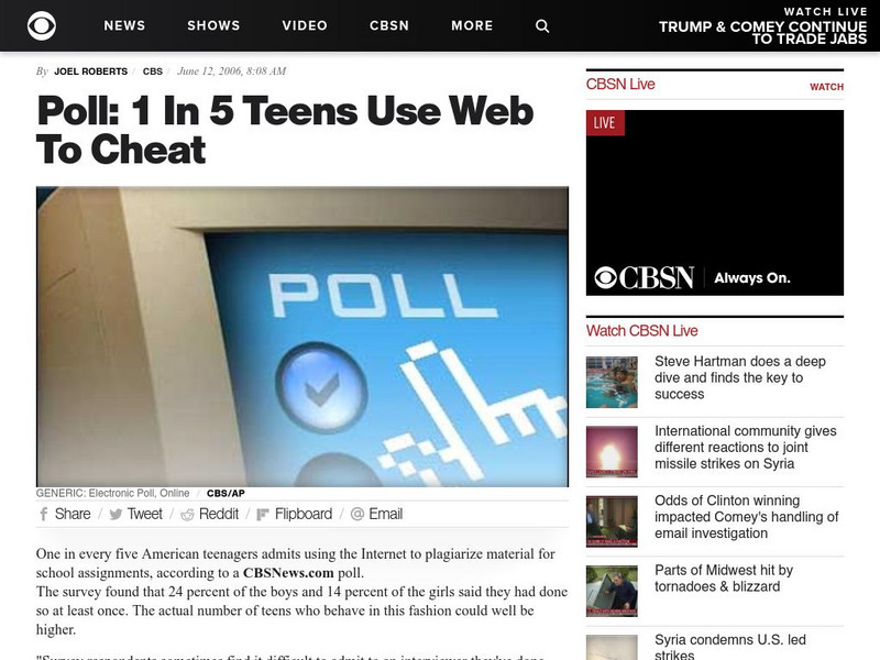 Cbs News: Poll: 1 in 5 Teens Use Web to Cheat